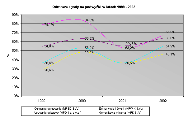 · 46,1% ogółu rozmówców odmawia zgody na jakąkolwiek podwyżkę opłaty za wywóz odpadów, co stanowi wzrost o ok. 10 pkt. procentowych w stosunku do roku ubiegłego. Wśród tych którzy skłonni byliby płacić więcej przeważa akceptacja podwyżki poniżej 3 zł miesięcznie (aż 30,8% ankietowanych).